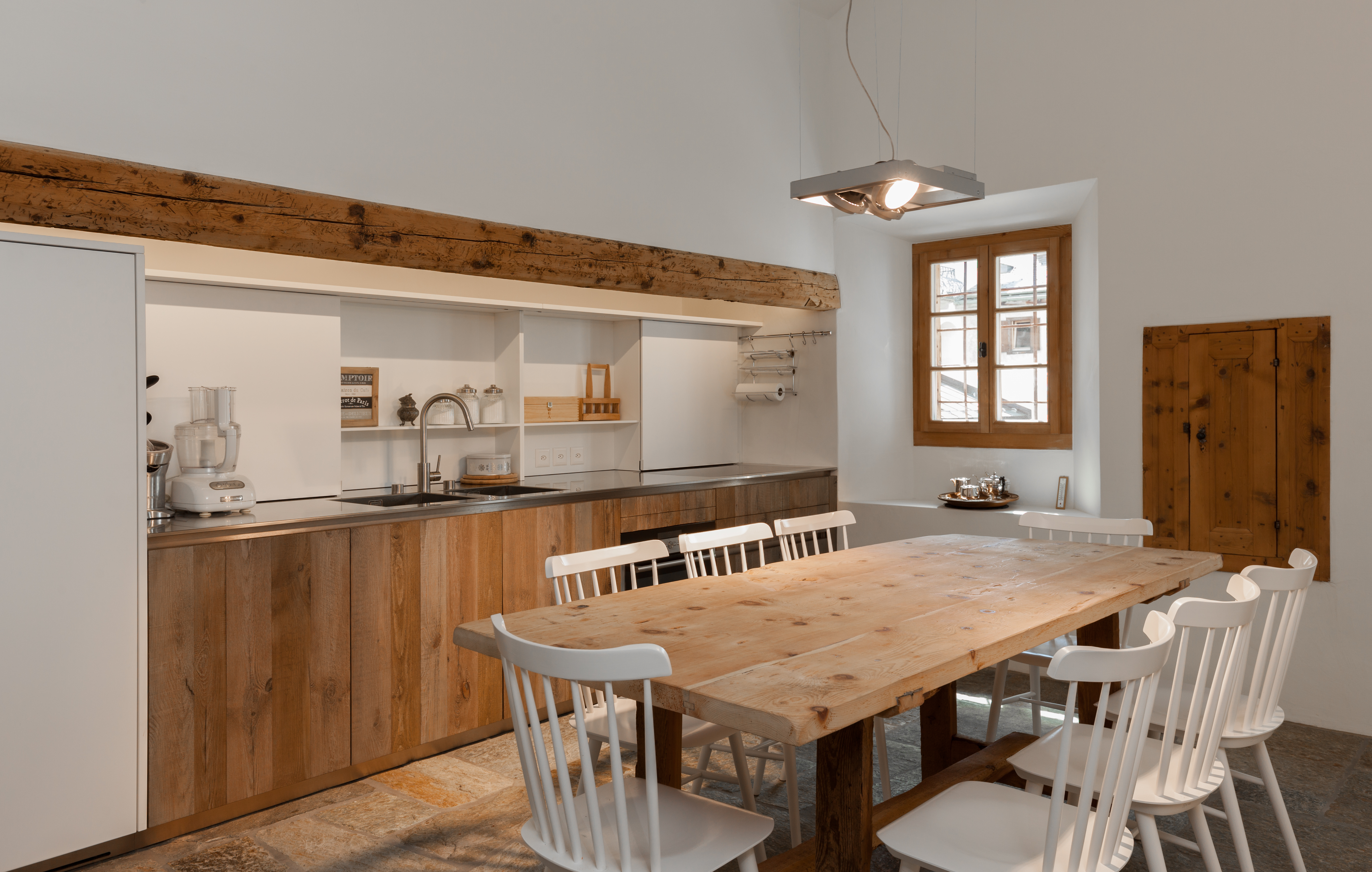 The extraordinary height and the therefore generous spaces of this typical Engadine “Chesa”, dated from 1595, are characteristics that remain important after the current renovation. The same can be said for the antique building material and the typical characteristics of the Engadine Farmhouse.