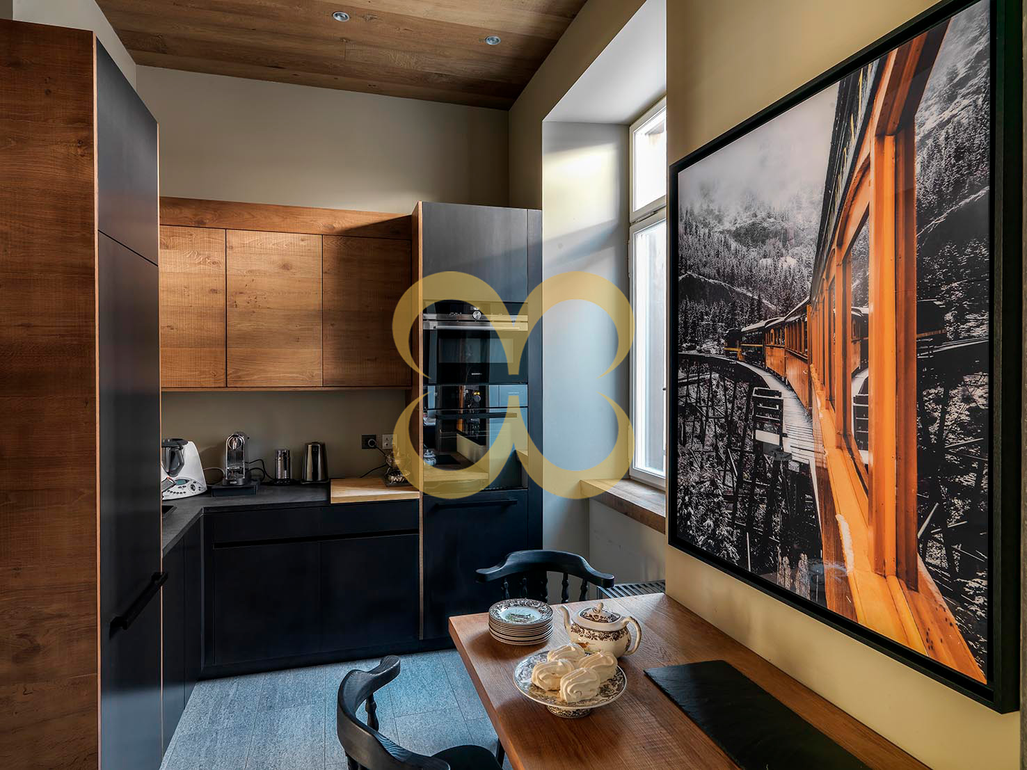 Hauptschlafzimmer mit eigenem Bad mit Badewanne und Dusche und Galerie mit Arbeitszimmer und begehbarem Kleiderschrank