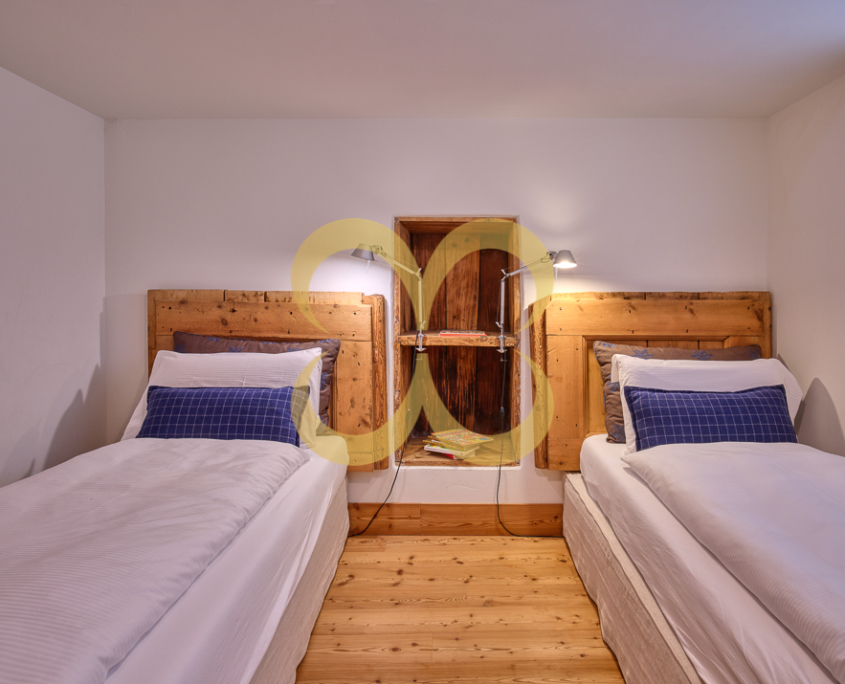 1 Zimmer mit zwei Einzelbetten mit Bad zugänglich vom Korridor