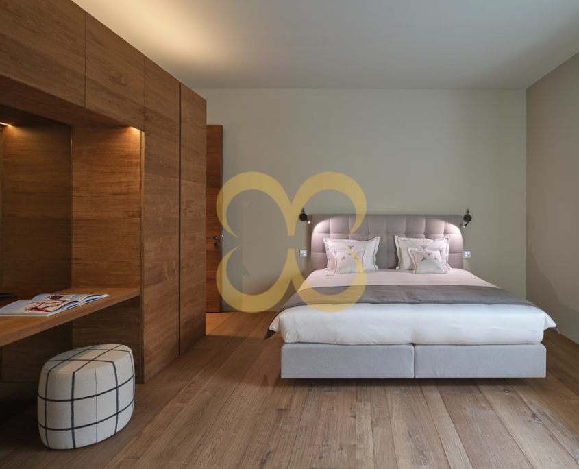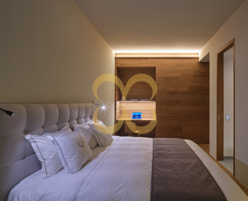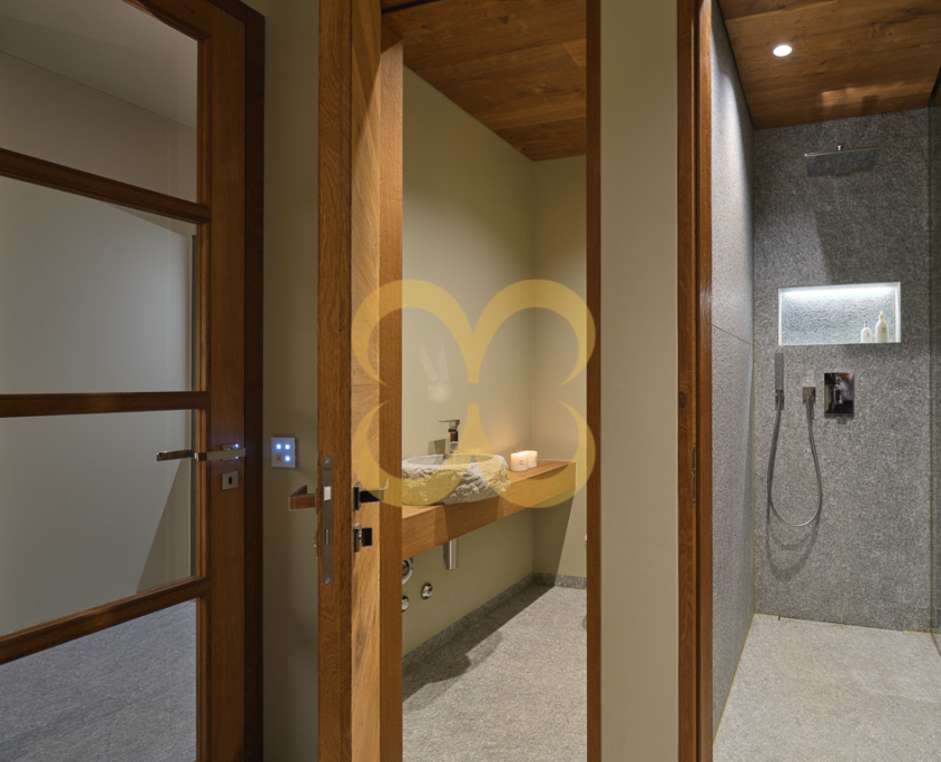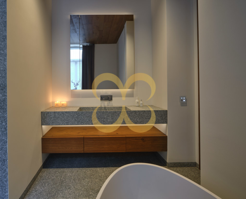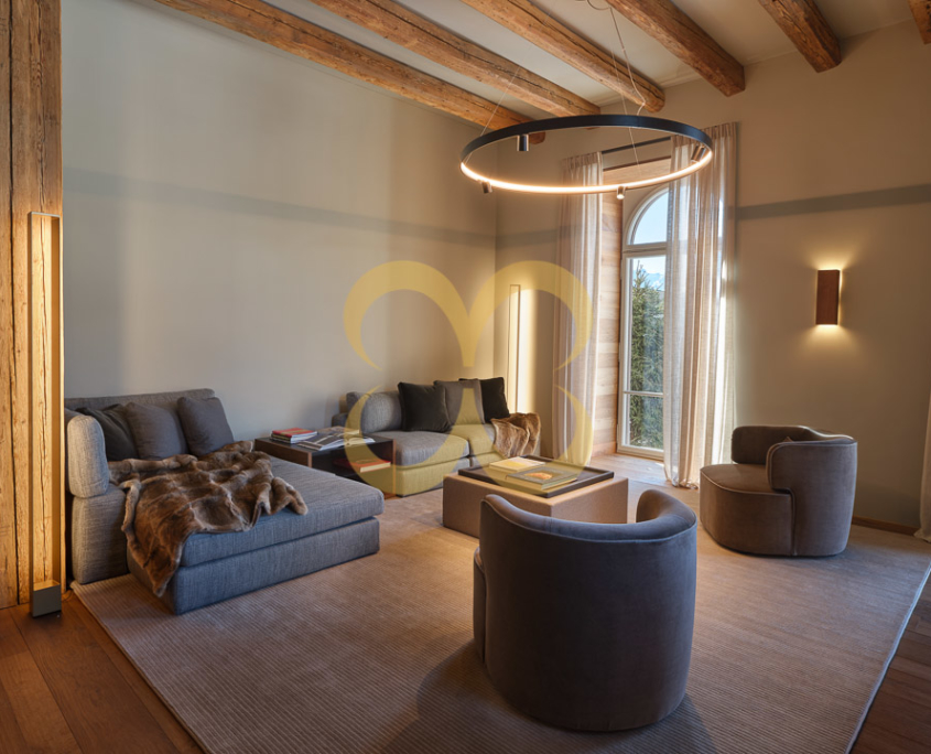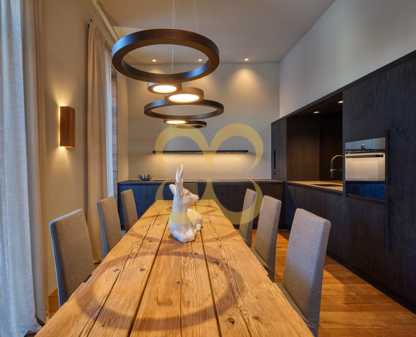 Wunderschöne, kürzlich renovierte Wohnung auf zwei Ebenen mit grossem Wohnzimmer mit direktem Ausgang in den Garten, von wo aus man eine atemberaubende Aussicht auf die Engadiner Berge geniessen kann.