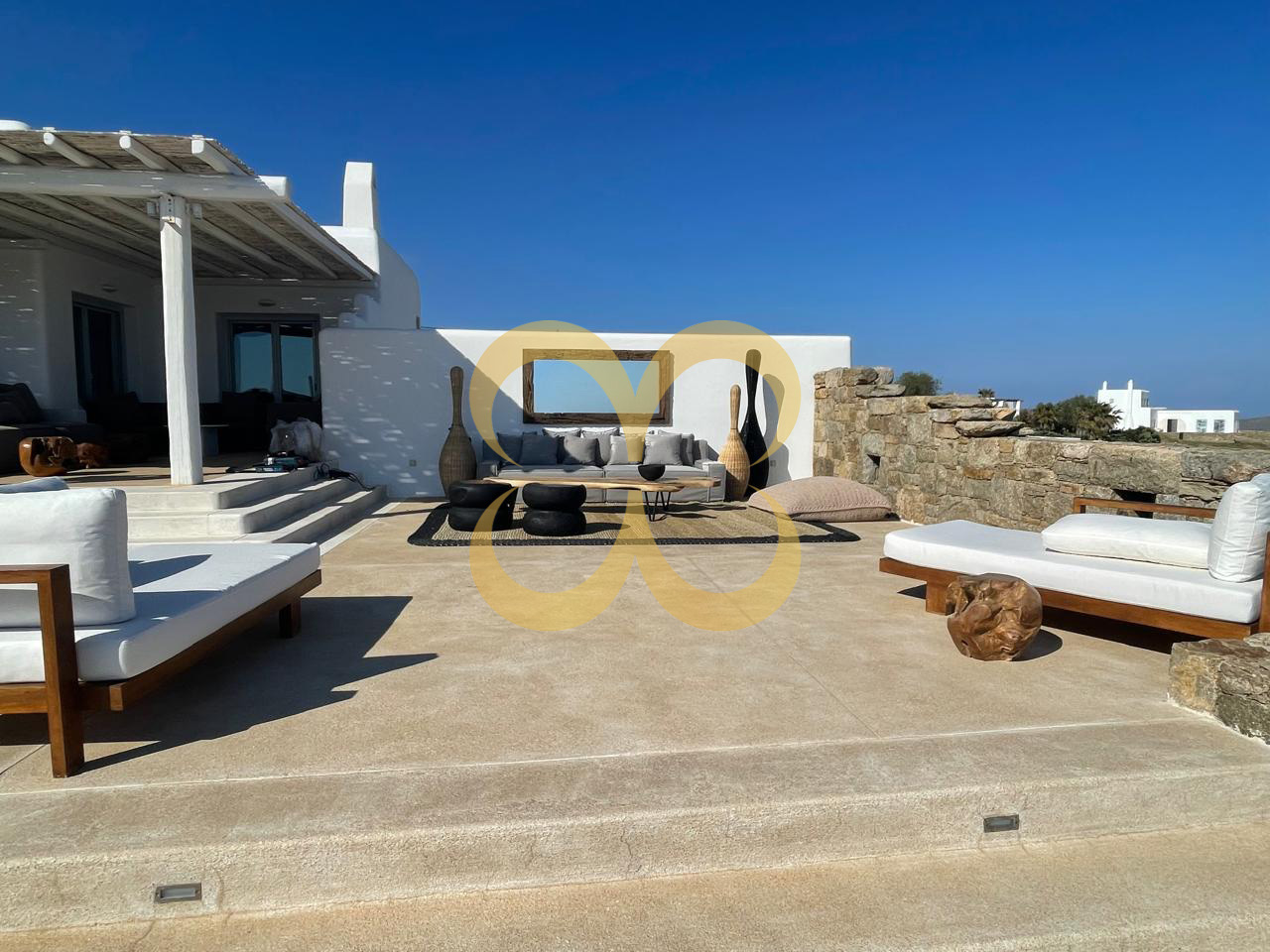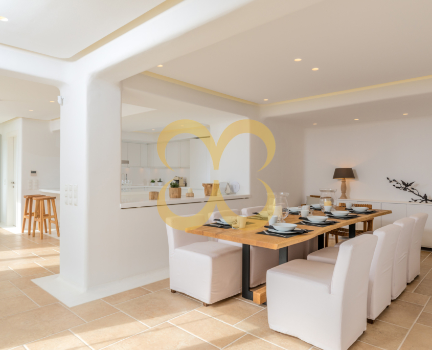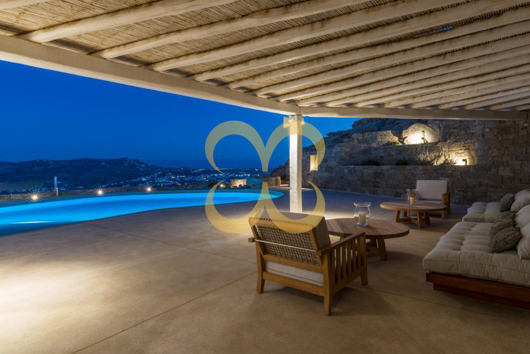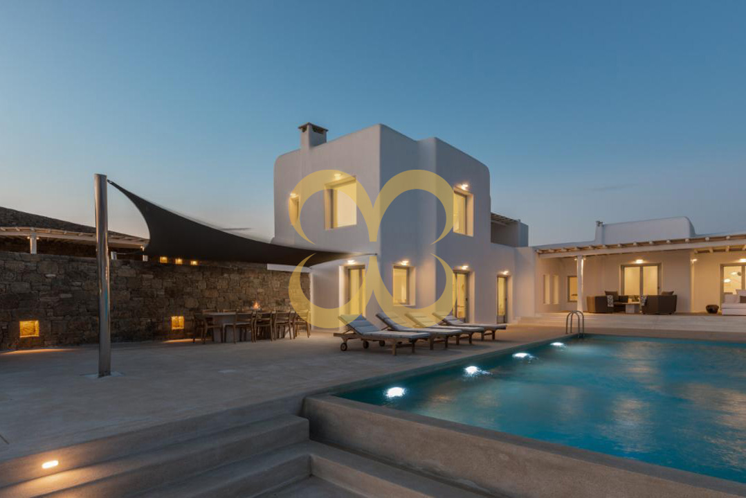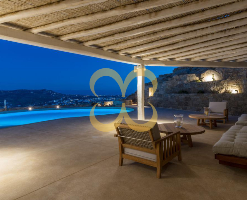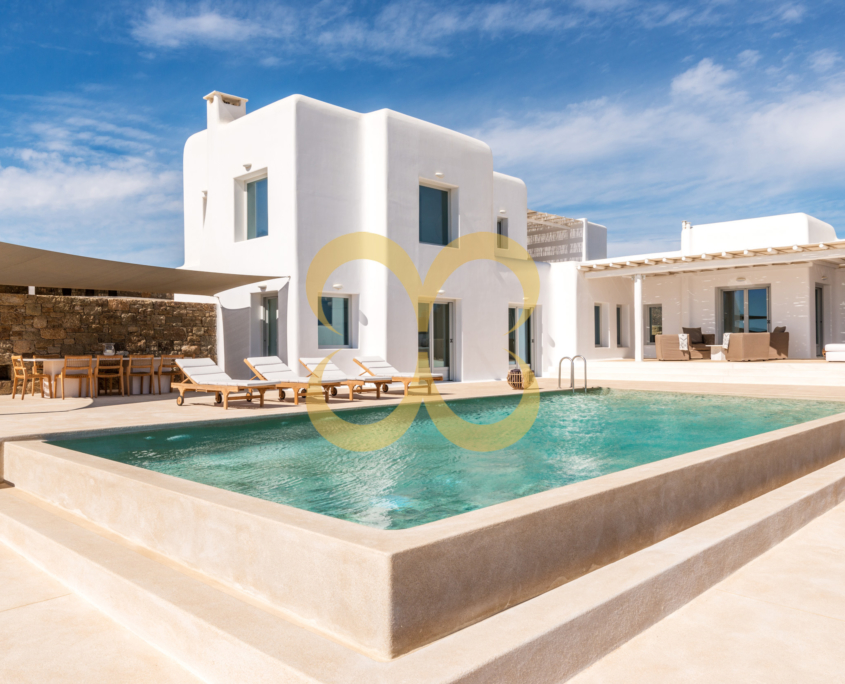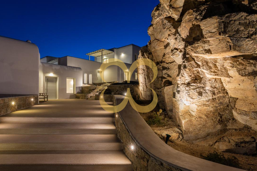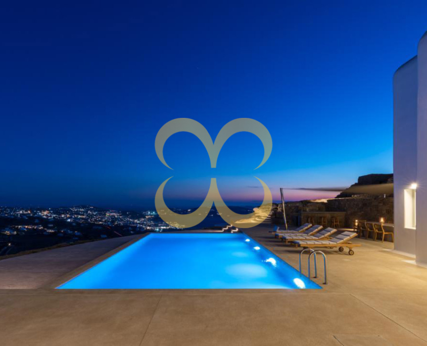 1 Hauptschlafzimmer mit Kingsize-Bett, en-suite Badezimmer, begehbarer Kleiderschrank, Zugang zum privaten Terrasse mit herrlichem Blick auf Mykonos-Stadt