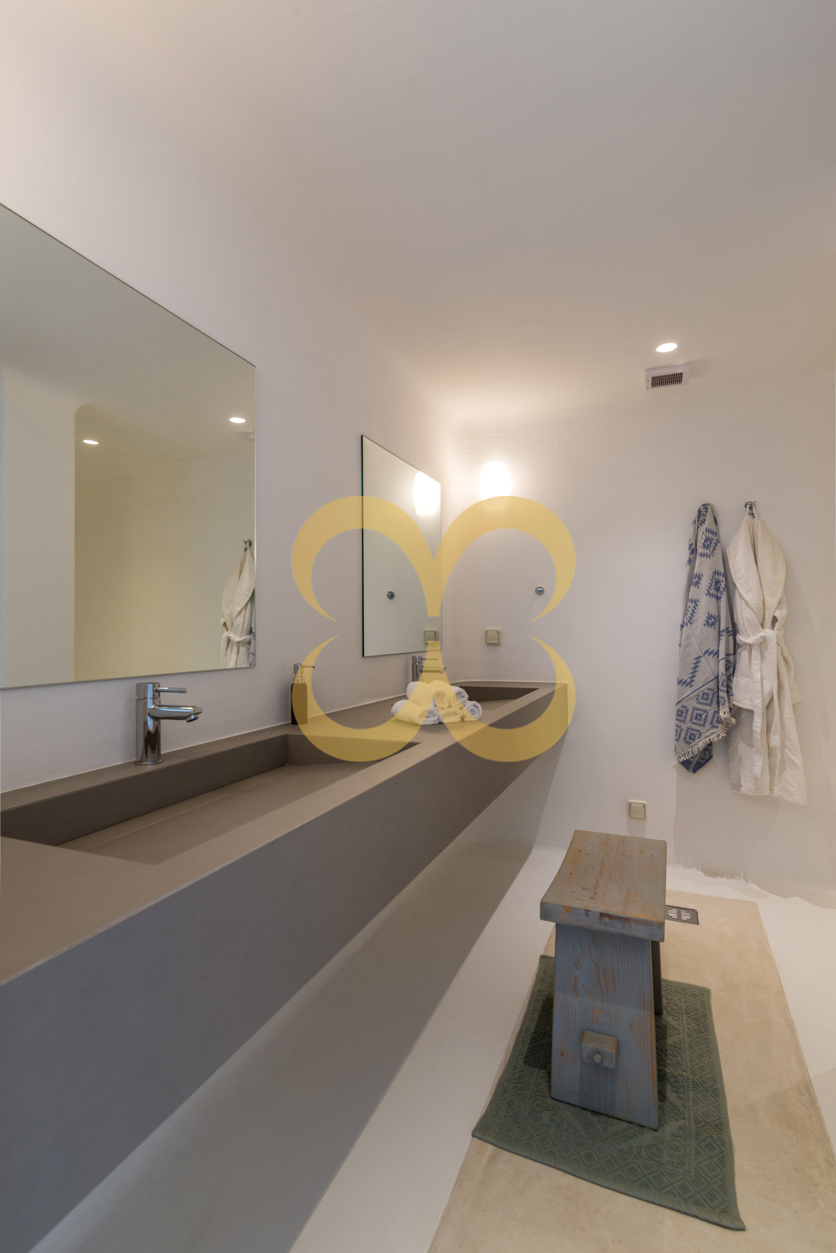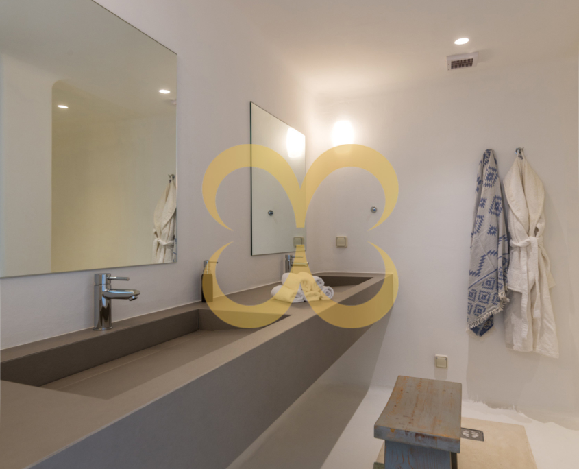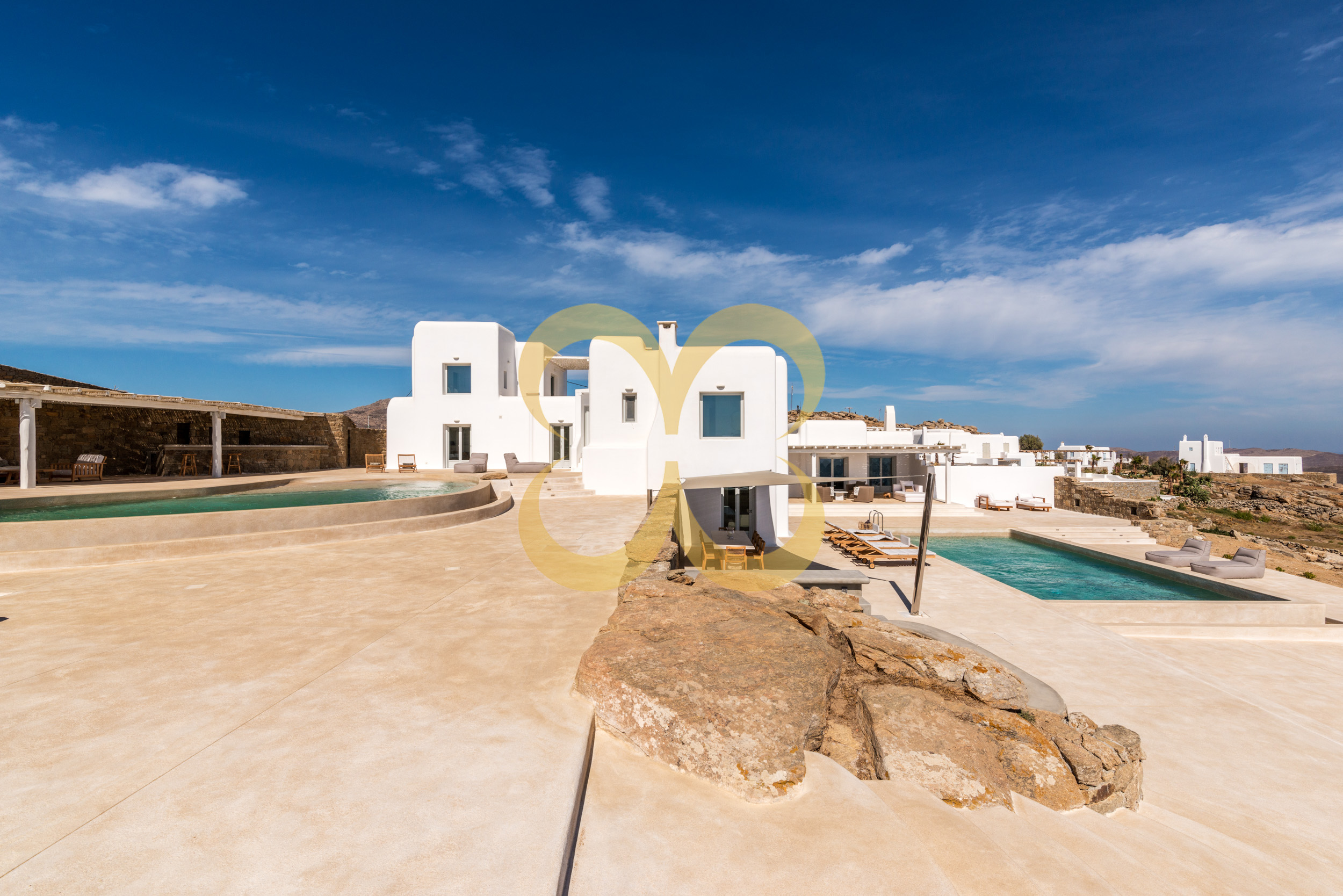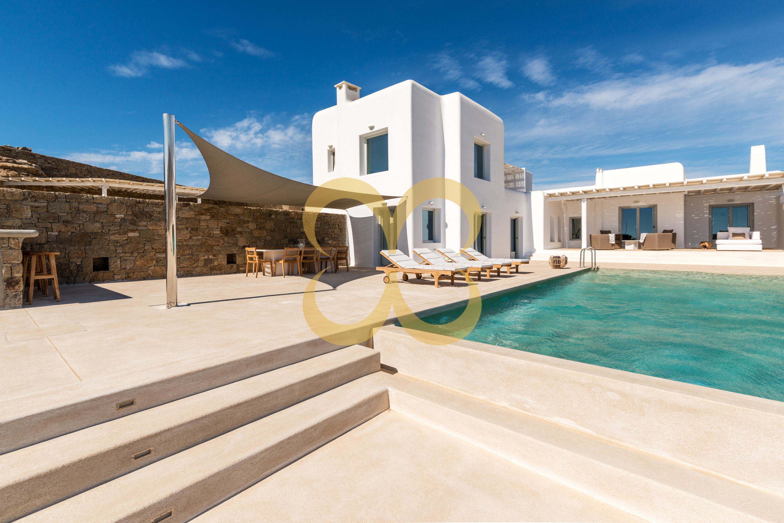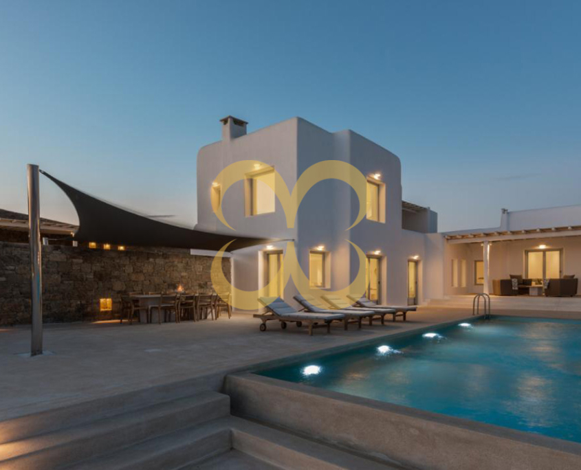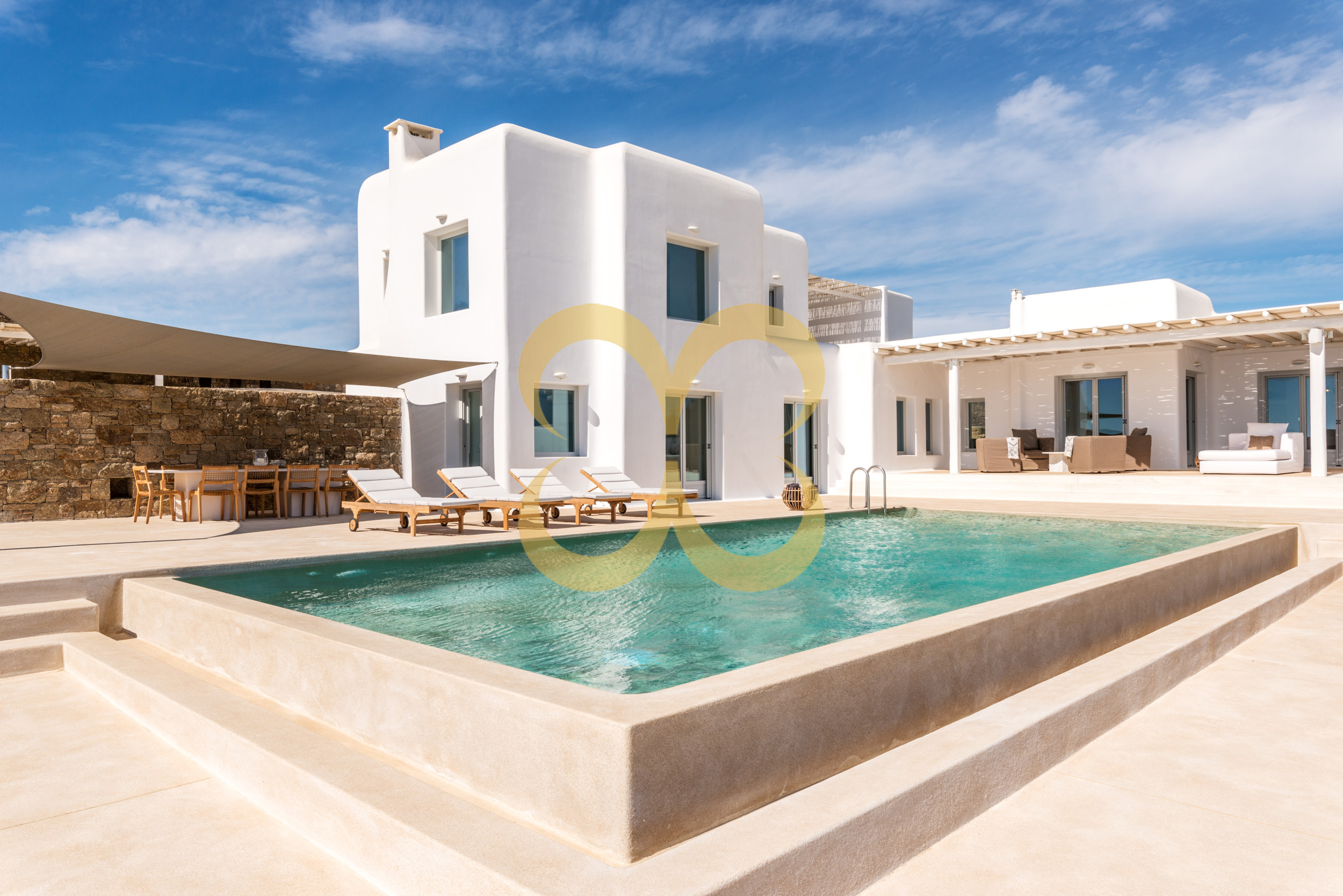 1 Hauptschlafzimmer mit Kingsize-Bett, en-suite Badezimmer, begehbarer Kleiderschrank, Zugang zum privaten Terrasse mit herrlichem Blick auf Mykonos-Stadt