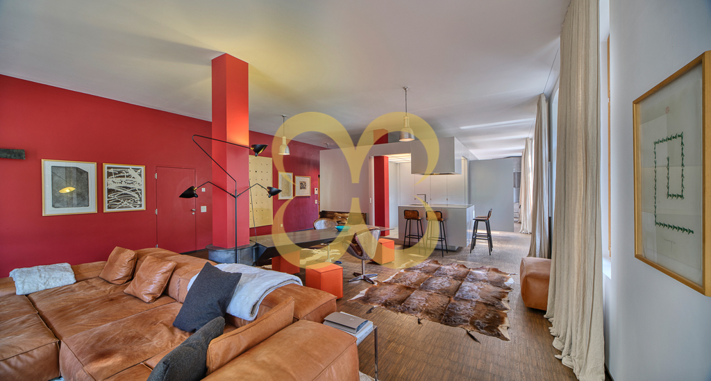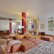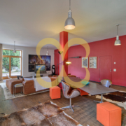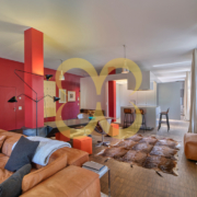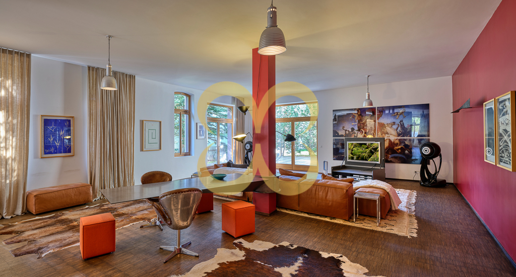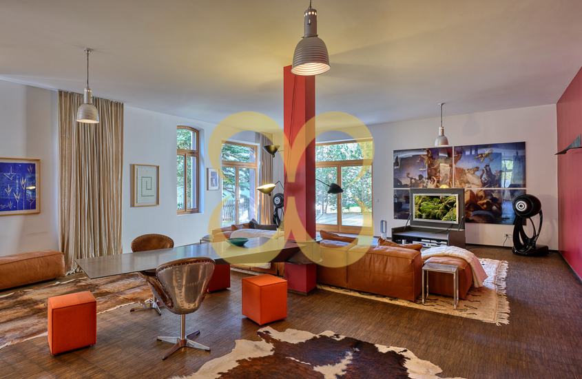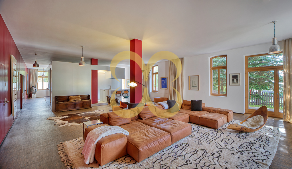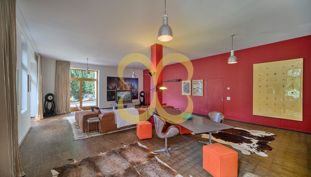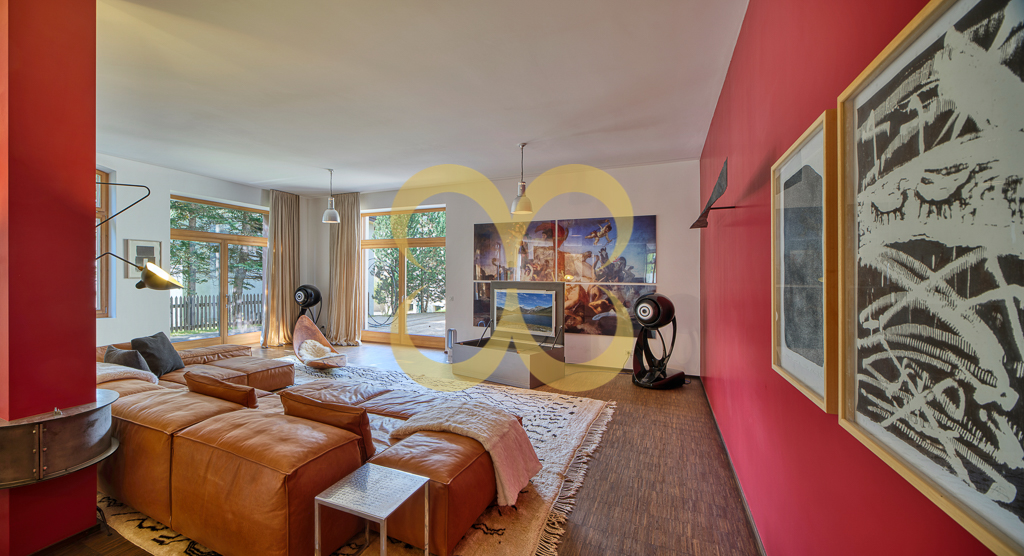 Großes Wohnzimmer mit Zugang zur Terrasse