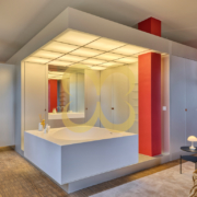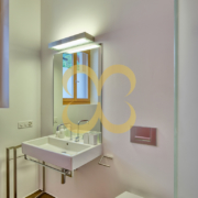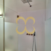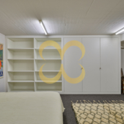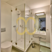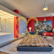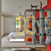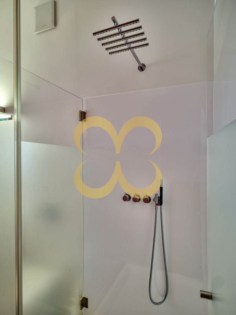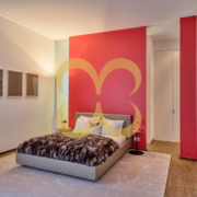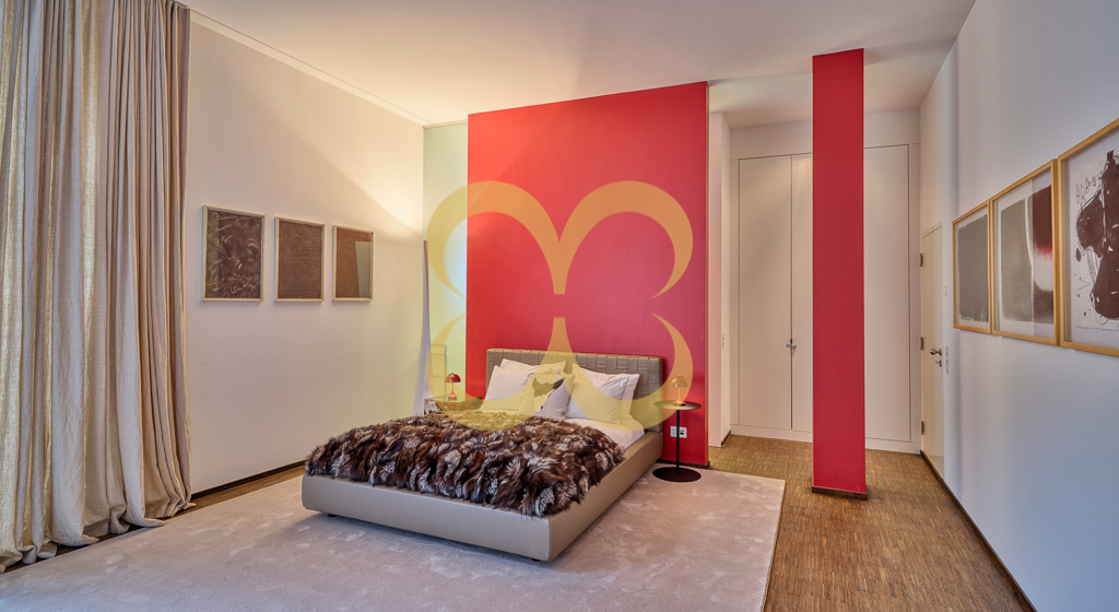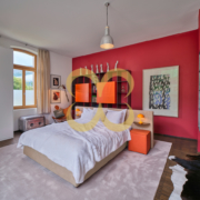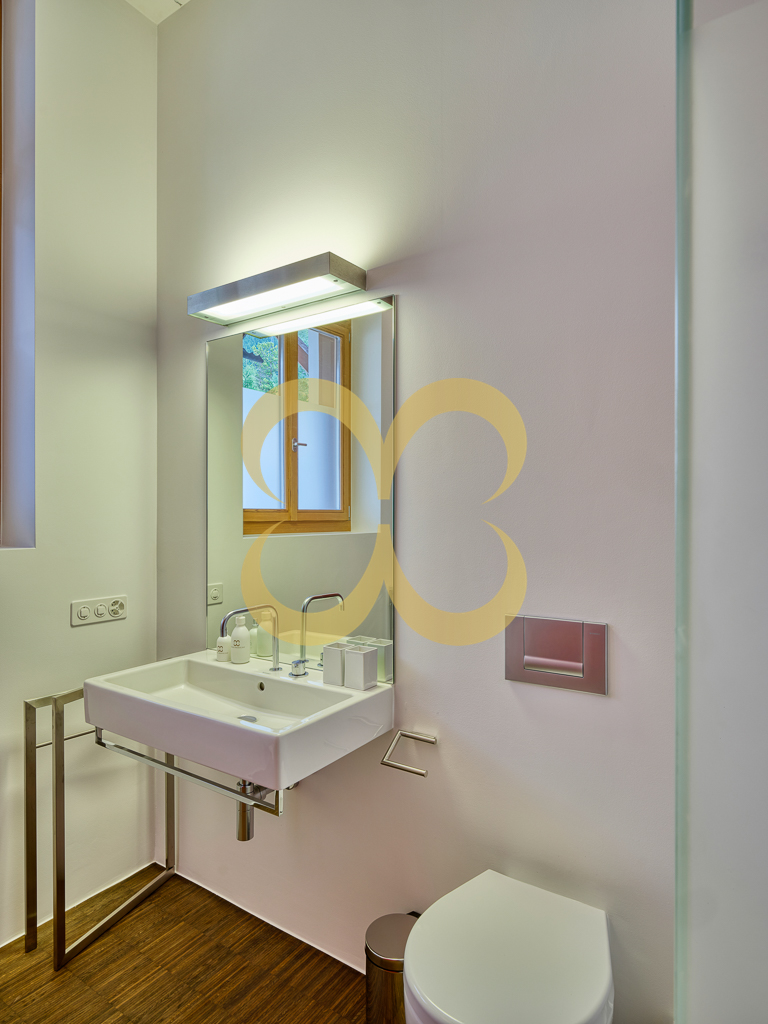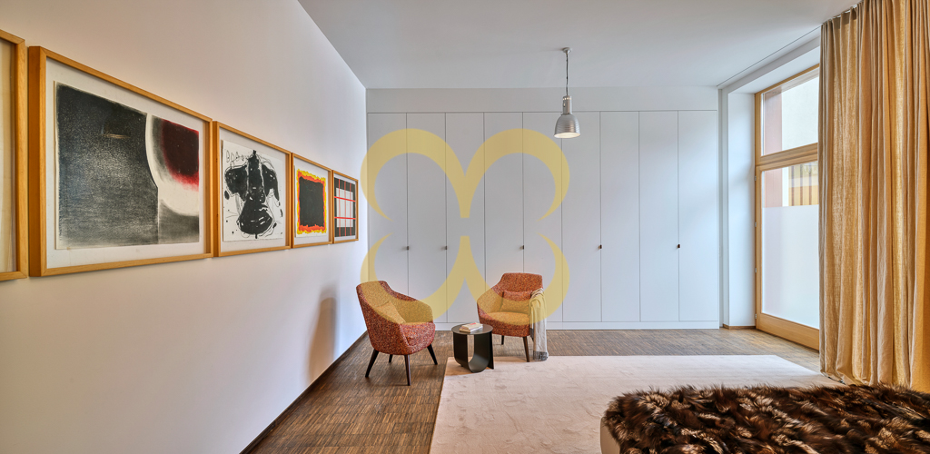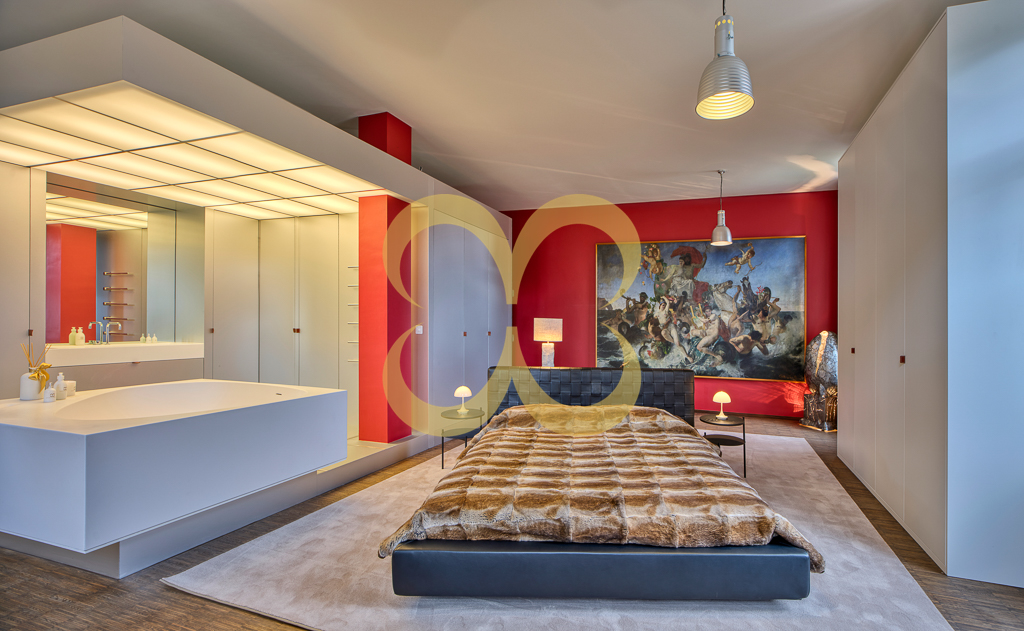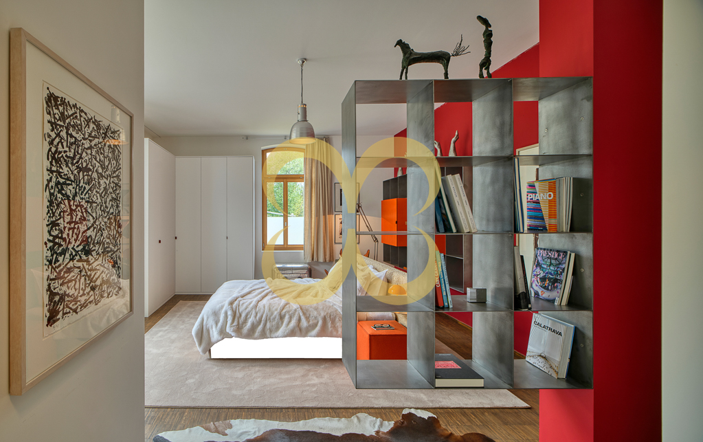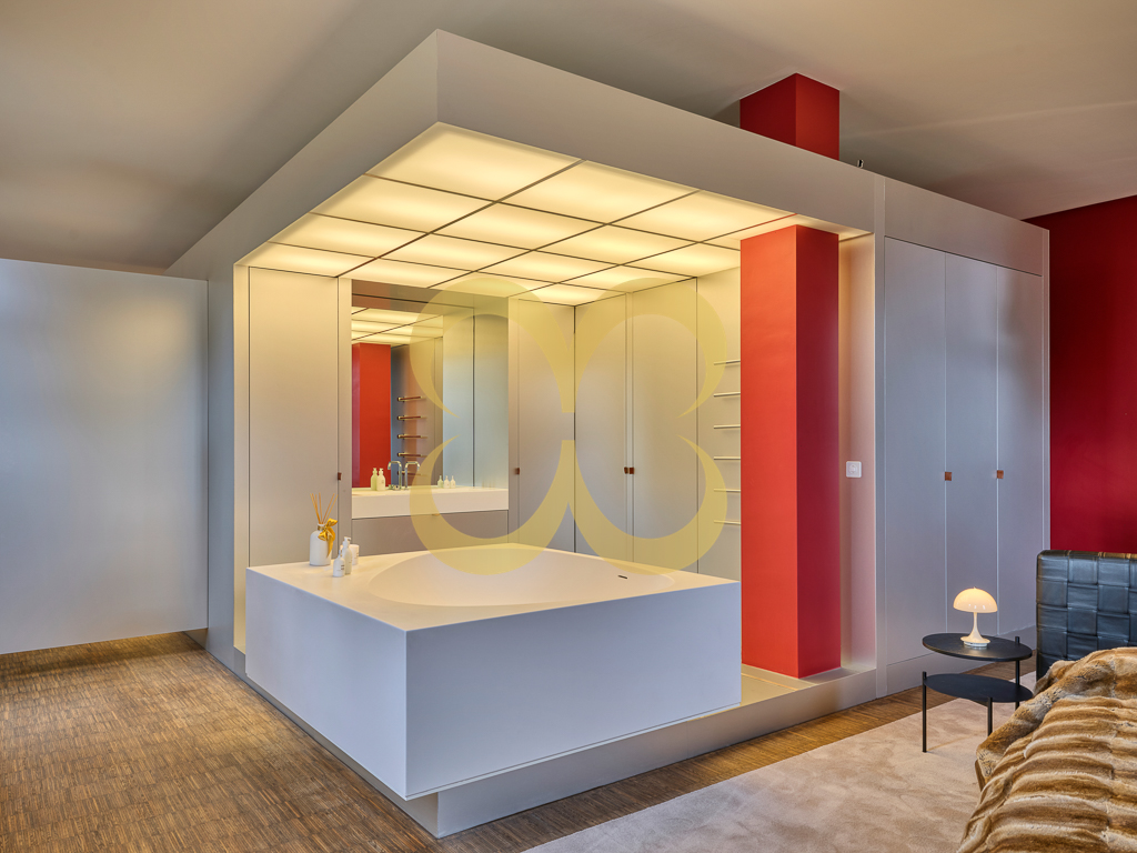 Hauptschlafzimmer durch Schiebetüren getrennt mit eigenem Bad mit Badewanne