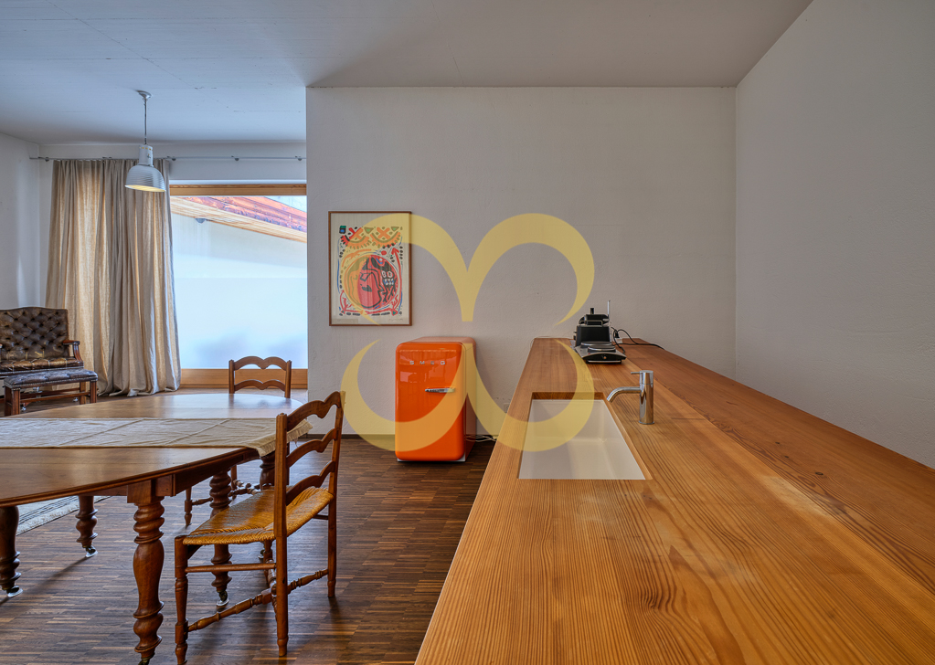 Küche und Esszimmer zum Wohnzimmer hin offen