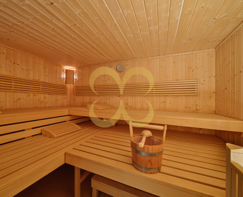 Spa mit Dampfbad, Sauna, Dusche und Umkleideräumen zur gemeinsamen Nutzung